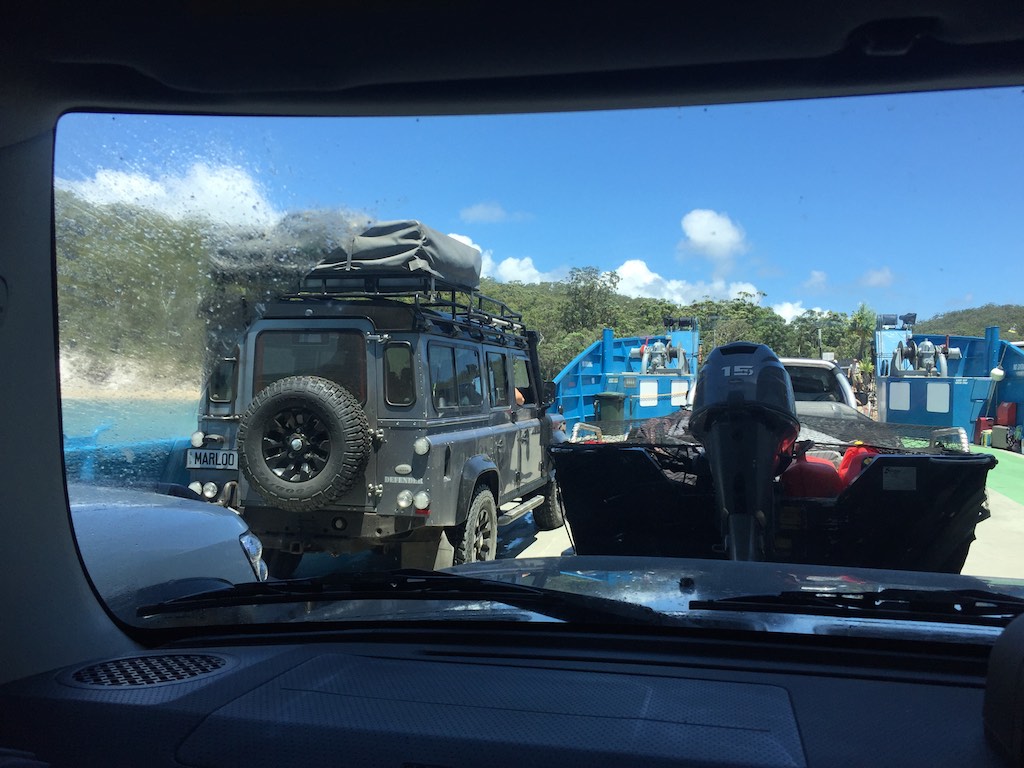 The ferry was brilliant. Andrew had to reverse onto the ferry and then we had 45 min to watch for dolphins and turtles in the Great Sandy Strait. There is another ferry we could have caught, which leaves from Inskip Point. Unfortunately, someone lost their car recently from that ferry when they forgot to put their handbrake on!
